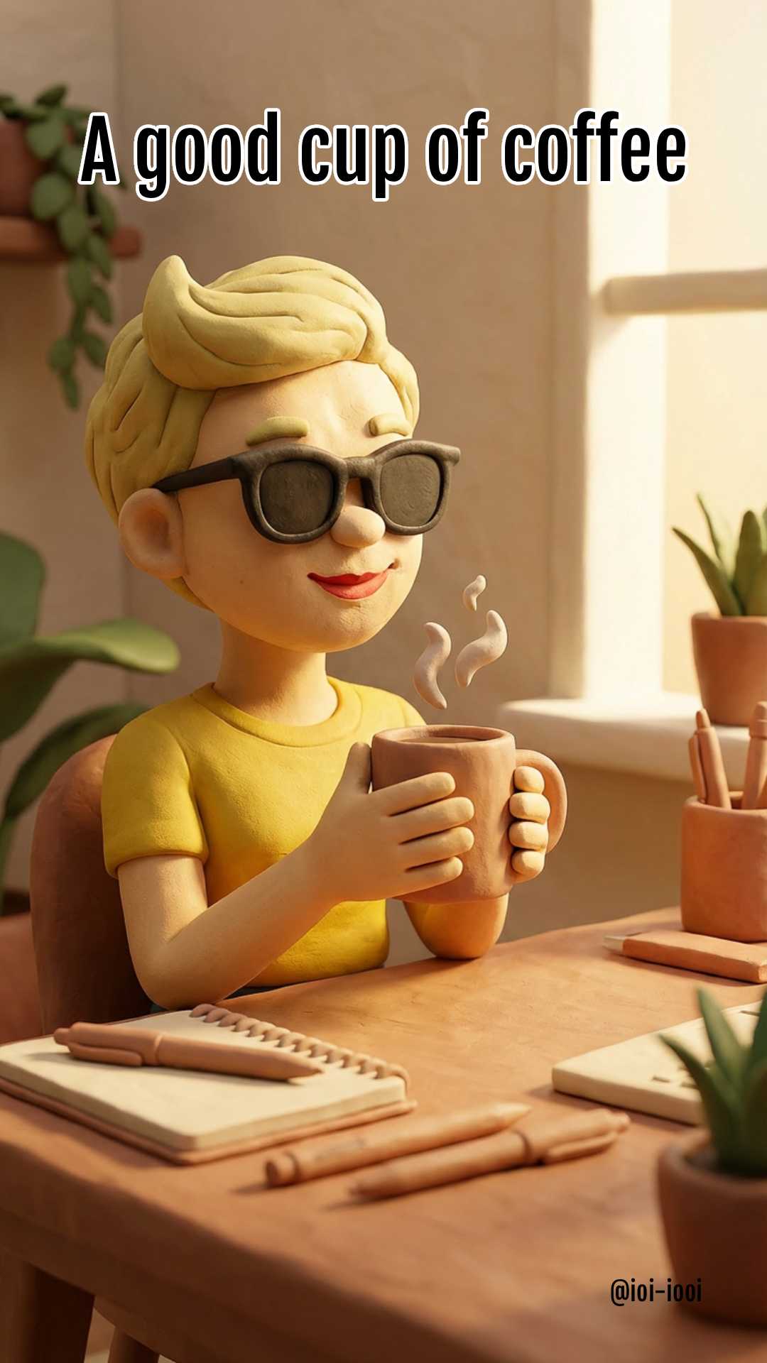 스튜디오의 아침 분위기가 클레이 스타일로 표현된다.